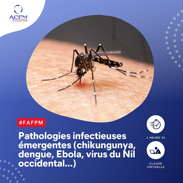 - Pathologies infectieuses émergentes (chikungunya, dengue, Ebola, virus du Nil occidental…)